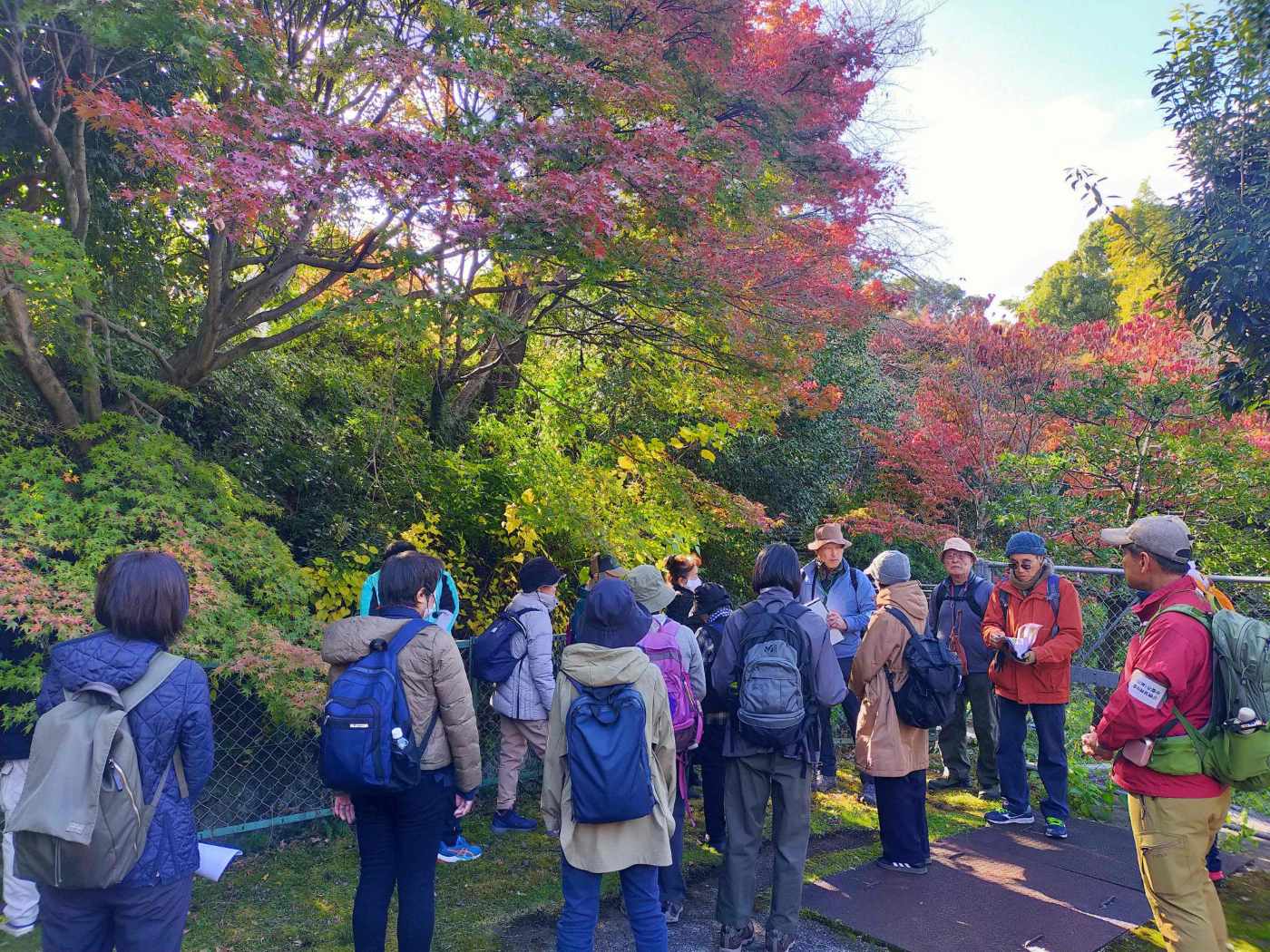 準備体操の後に円山公園をスタート。園内のスポットを訪ねてから、京都一周トレイル東山コース、菊渓、将軍塚(青龍殿大舞台)を巡って、再び円山公園に戻ってきます。(約3km)